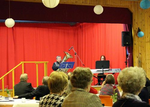 Veli Tikkala soitti ja laulatti juhlayleisöä.